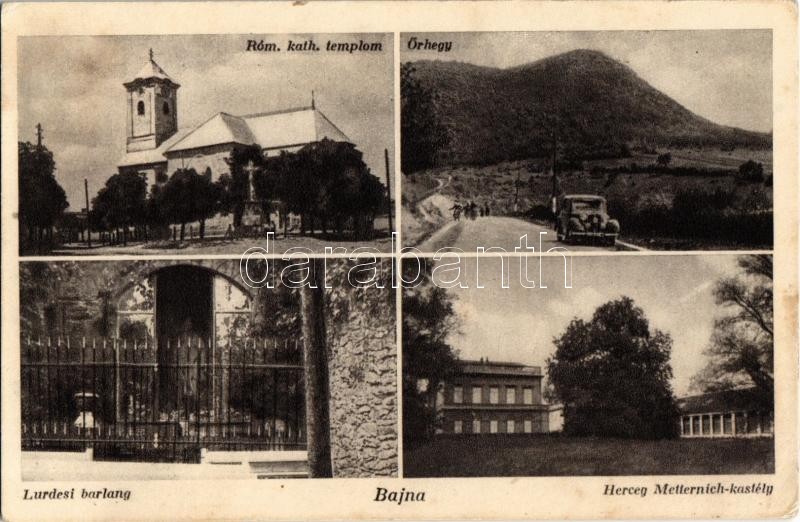 Bajna, Római katolikus templom, Őrhegy, automobil, Lourdes-i barlang, ... https://www.darabanth.com/hu/344-Gyorsarveres/344.0/Kepeslapok/Magyarorszag~1500004/Bajna-Romai-katolikus-templom-Orhegy-automobil-Lourdes-i-barlang-Herceg-Metternich-kastely-~II1942531