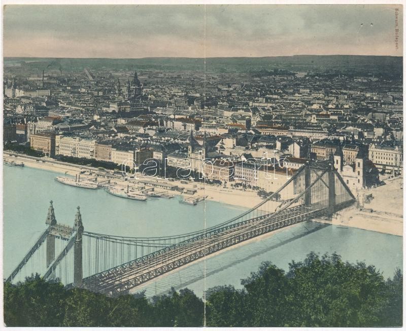 Budapest, Erzsébet híd építés alatt lebetonozás előtt. Kinyitható lap / Elisabeth bridge in construction before concreting. Folding card (non PC) (hajtásnál szakadt / torn at fold)