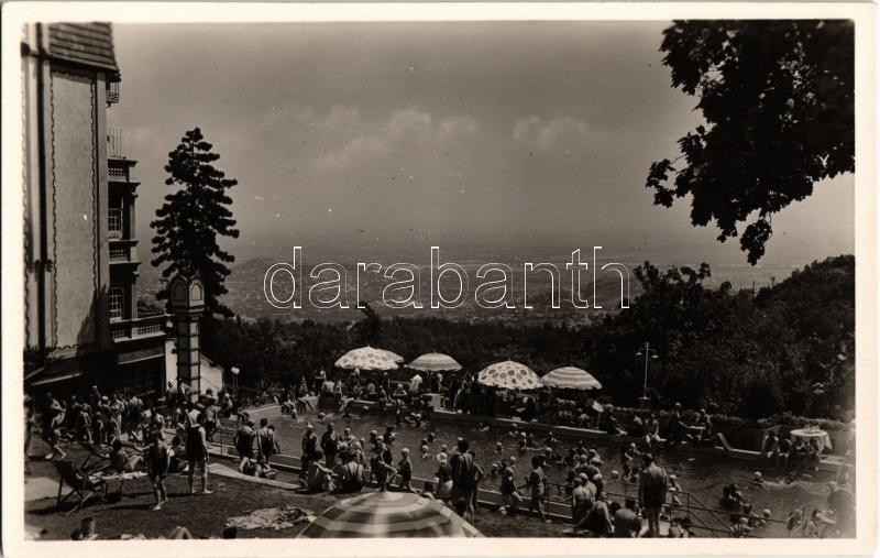 Leírás: Budapest XII. Svábhegyi szanatórium strandfürdője, fürdőzők, napozók