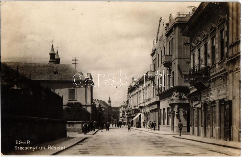 Eger, Széchenyi út, Diviaczky Gyula Szent Margit drogériája (gyógyszertár), Pléh István asztalos, Papp Testvérek, Kardos Sándor üzlete, Peterka István bútorraktára. Kiadja Engländer Adolf