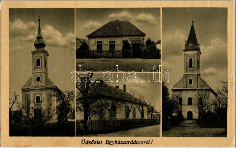Leírás: Egyházasrádóc, Római katolikus templom, Református templom, üzlet, utcakép (EK)
