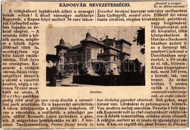 Kaposvár nevezetességei, színház; kiadja Farkasfalvi Kornél, Knopfmach... https://www.darabanth.com/hu/344-Gyorsarveres/344.0/Kepeslapok/Magyarorszag~1500004/Kaposvar-nevezetessegei-szinhaz-kiadja-Farkasfalvi-Kornel-Knopfmacher-felvetele-Rb~II1953097