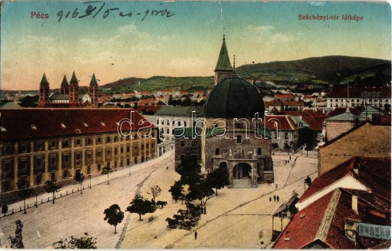Pécs, Széchenyi tér látképe, Dzsámi (Rb) https://www.darabanth.com/hu/344-Gyorsarveres/344.0/Kepeslapok/Magyarorszag~1500004/Pecs-Szechenyi-ter-latkepe-Dzsami-Rb~II1942547