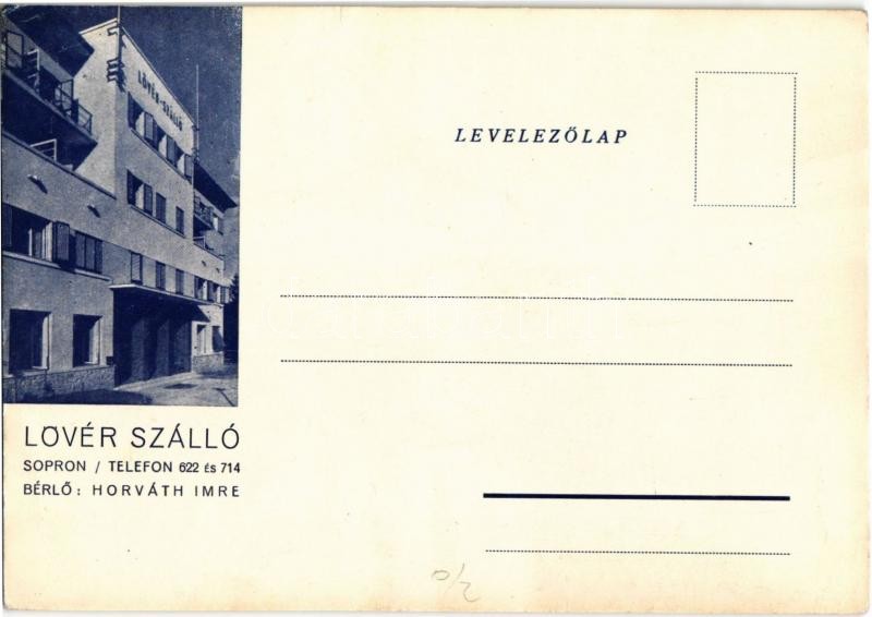 Sopron, Hotel Lövér szálloda (bérlő: Horváth Imre) (EK) https://www.darabanth.com/hu/344-Gyorsarveres/344.0/Kepeslapok/Magyarorszag~1500004/Sopron-Hotel-Lover-szalloda-berlo-Horvath-Imre-EK~II1949603