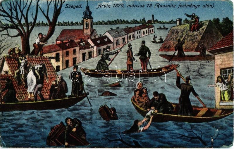 Szeged, 1879-es szegedi árvíz. Rausnitz festménye után (r) https://www.darabanth.com/hu/344-Gyorsarveres/344.0/Kepeslapok/Magyarorszag~1500004/Szeged-1879-es-szegedi-arviz-Rausnitz-festmenye-utan-r~II1942570