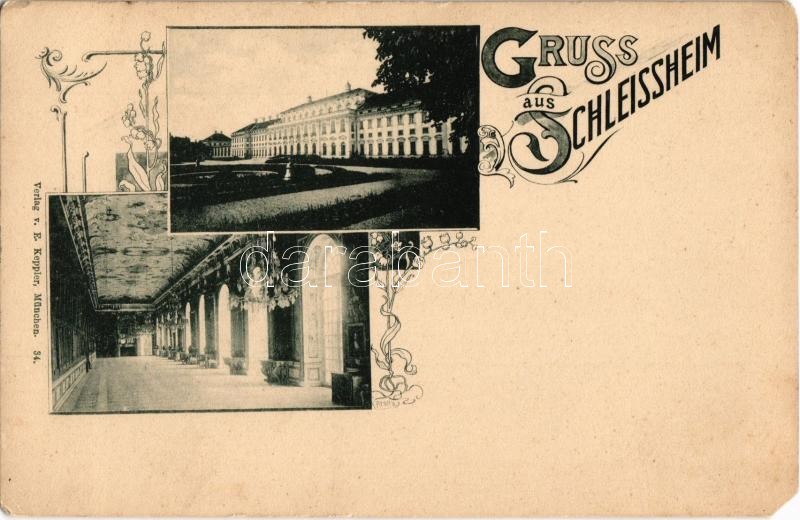 Leírás: Oberschleißheim, Schlossanlage Schleißheim (Schleissheim). Verlag E. Keppler 34. / castle. Art Nouveau, floral (EM)