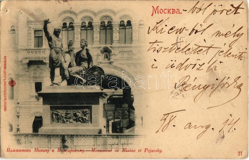 1898 Moscow, Moskau, Moscou; Monument de Minine et Pojarsky / Red Square, monument of Kuzma Minin and Pozharsky. Scherer, Nabholz & Co. (lyukak / holes)