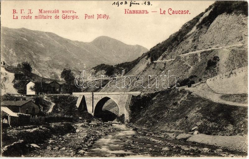 1908 Caucasus, La Caucase; La route militaire de Georgie, Pont Mléty / Voyenno-Gruzinskaya doroga / Georgian Military Road through the Caucasus from Georgia to Russia, bridge