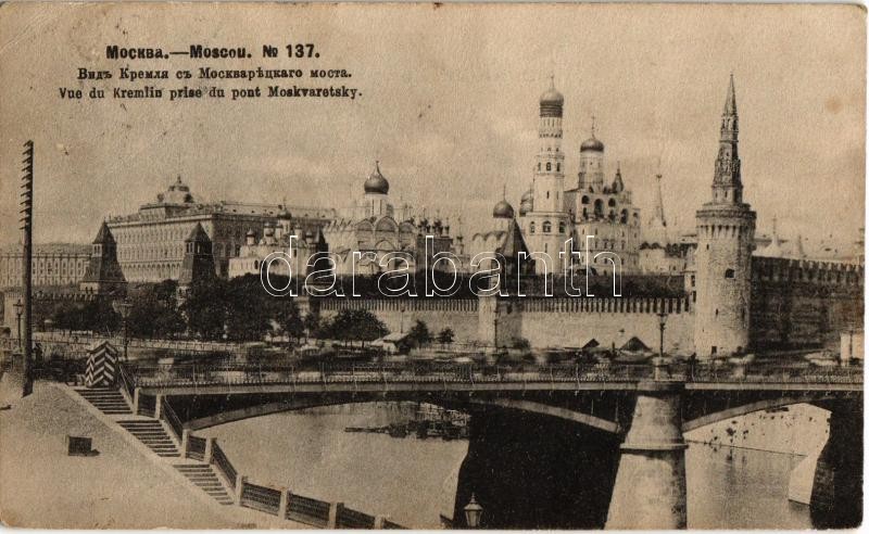 Moscow, Moskau, Moscou; Vue de Kremlin prise du pont Moskvaretsky / Kremlin, Moskva river, Ivan the Great Bell Tower, Dormition Cathedral (Usbensky Sobor). Phototypie Scherer, Nabholz & Co. (Rb)