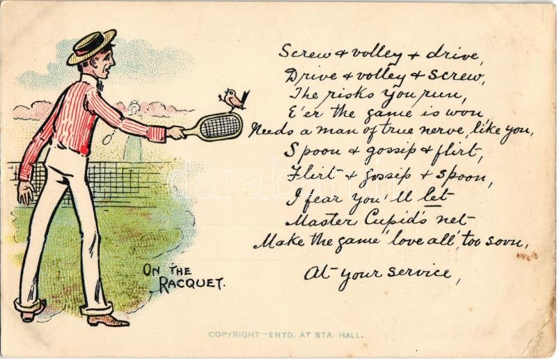 Leírás: On the racquet. Racket sports. Hood's Sarsaparilla Pictorial Postcards Series No. 1. with Hood's medicine advertisement. litho (EK)