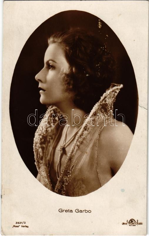 Greta Garbo. Ross Verlag 3531/2. Art Deco (glue mark) https://www.darabanth.com/hu/344-Gyorsarveres/344.0/Kepeslapok/Szinesz~1500083/Greta-Garbo-Ross-Verlag-35312-Art-Deco-glue-mark~II1941139