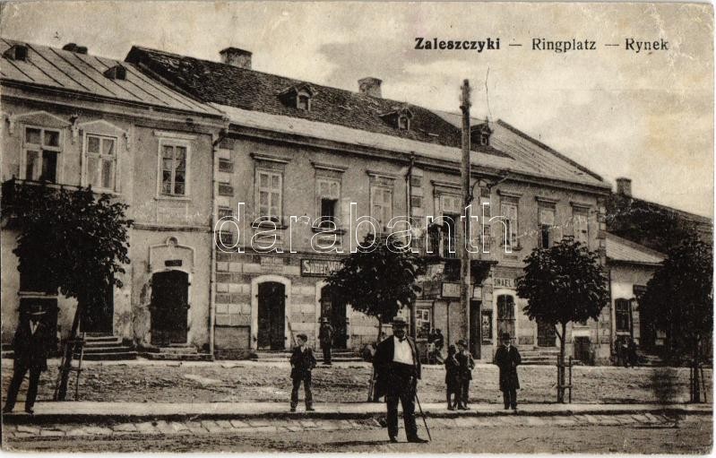 Zalishchyky, Zaleszczyki; Ringplatz / Rynek / street view with shops +... https://www.darabanth.com/hu/344-Gyorsarveres/344.0/Kepeslapok/Ukrajna~1500045/Zalishchyky-Zaleszczyki-Ringplatz-Rynek-street-view-with-shops-plus-1916-K-k-21-Landwehr-Infan~II1953912