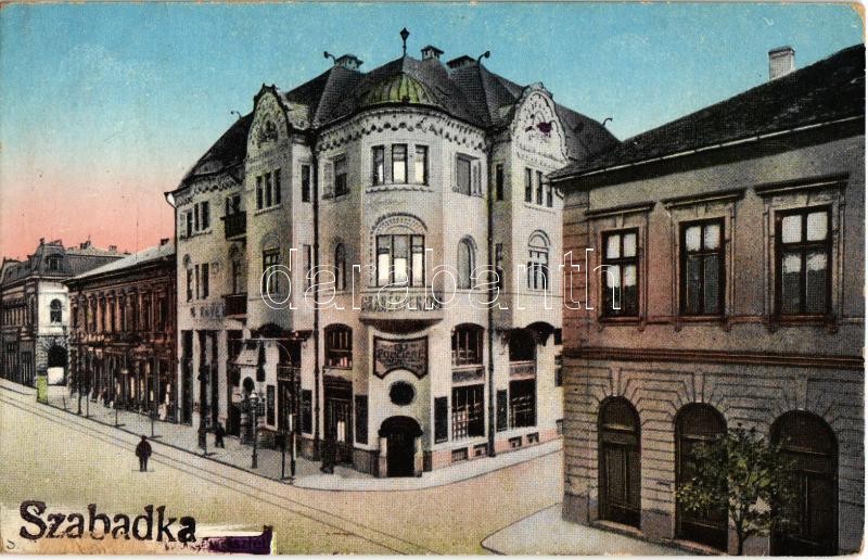 Leírás: Szabadka, Subotica; utcakép, takarékpénztár, kávéház / street view with savings bank and cafe
