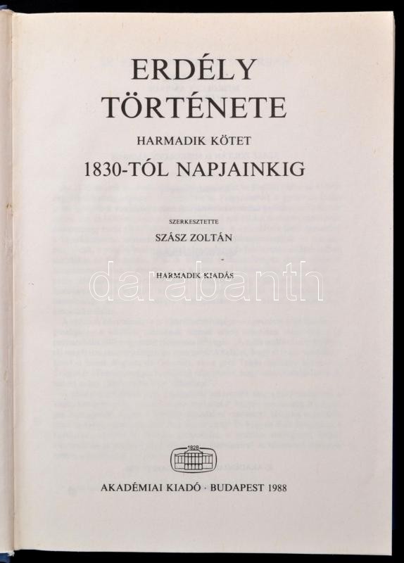 Leírás: Erdély története napjainkig I-III. kötet. Szerk.: Köpeczi Béla. Bp., 1988, Akadémiai Kiadó. Harmadik kiadás. Kiadói egészvászon kötésben, kiadói papírborítóban, szép állapotban.