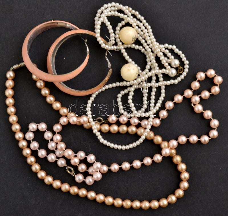 3 gyöngy lánc, 1 karlánc, 1 gyöngyös fülbevaló, 1 karika fülbevaló https://www.darabanth.com/hu/344-Gyorsarveres/344.0/Mutargy-papirregiseg-egyeb/Bolhapiac~12/3-gyongy-lanc-1-karlanc-1-gyongyos-fulbevalo-1-karika-fulbevalo~II1942700