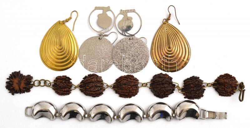 Leírás: 5 db modern ékszer: 3 fülbevaló, 2 karlánc