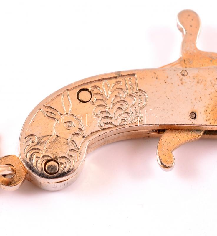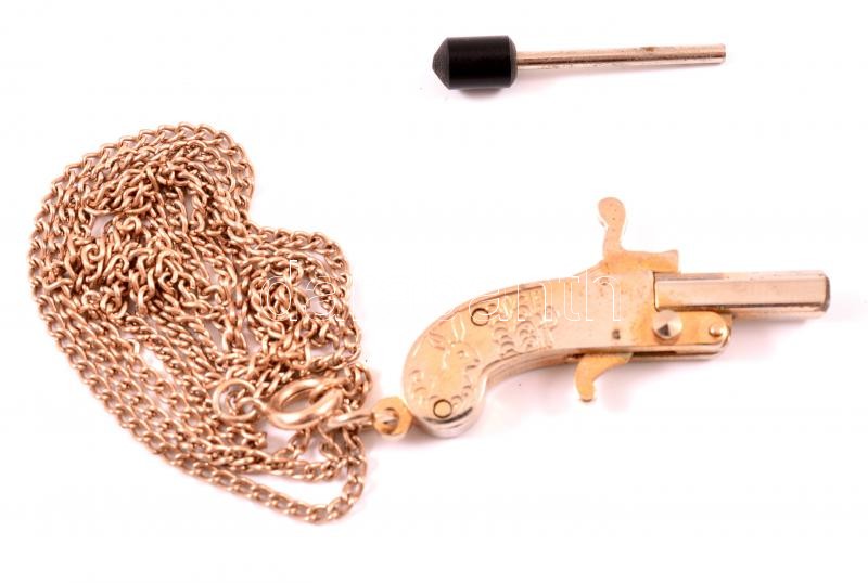 Leírás: Bizsu pisztoly medál, láncon, játék puskatöltővel