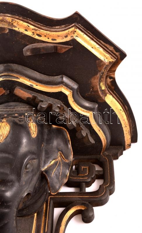Leírás: Elefántos fa fali dísz, sérült, h: 37 cm