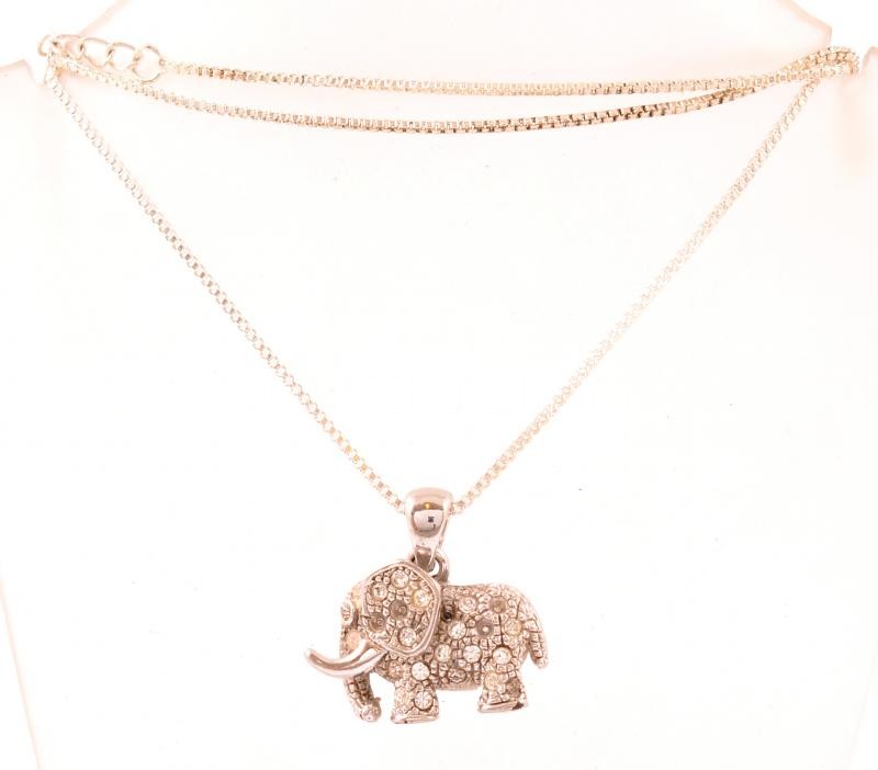 Leírás: Ezüstözött lánc elefánt köves medállal