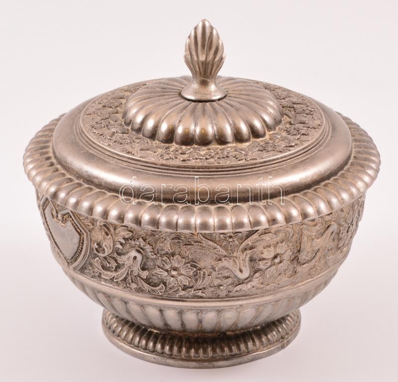 Leírás: Fedeles alpakka cukortartó, m: 12,5 cm