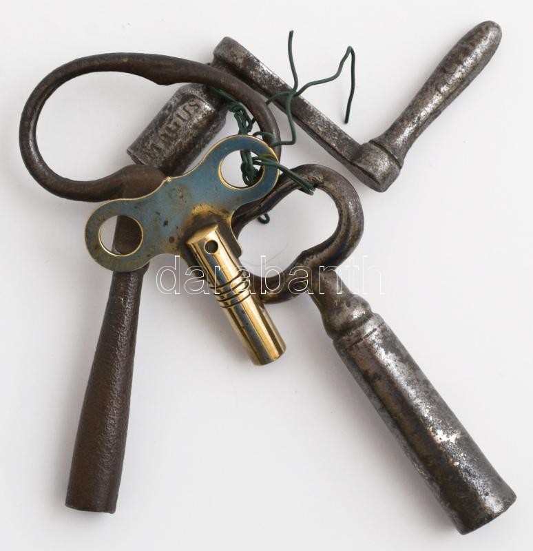 Leírás: Kis kulcs tétel: 2 db órakulcs, 1 db kéményablak-kulcs, 1 db korcsolyakulcs