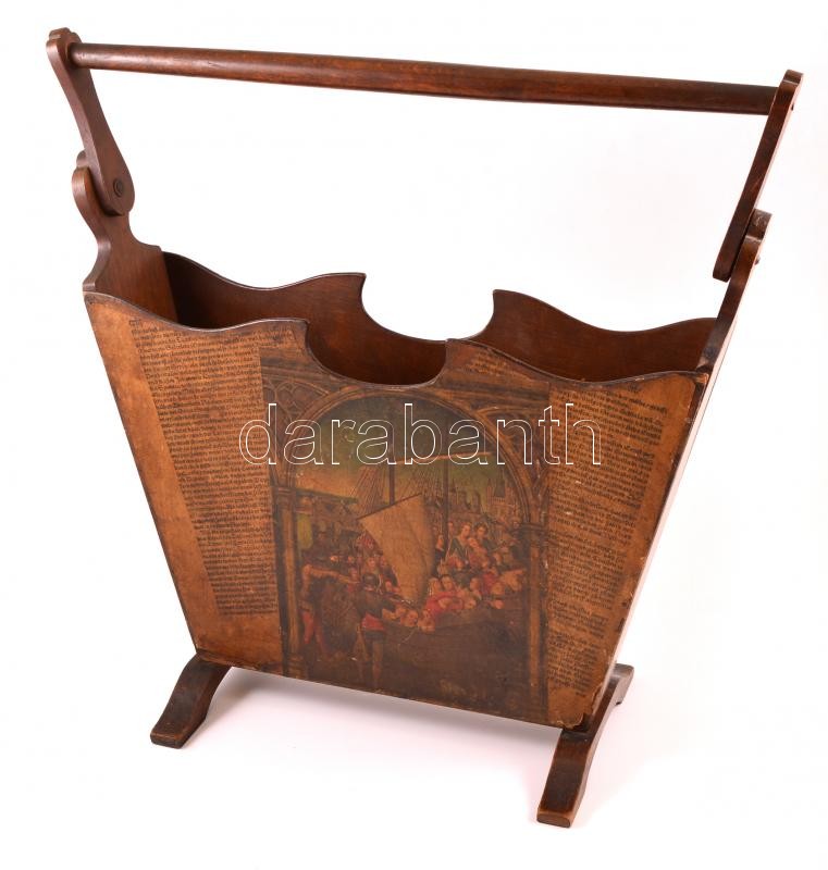 "Kódexlapos" díszítésű fa újságtartó, 52×50 cm https://www.darabanth.com/hu/344-Gyorsarveres/344.0/Mutargy-papirregiseg-egyeb/Bolhapiac~12/Kodexlapos-diszitesu-fa-ujsagtarto-52C39750-cm~II1953090