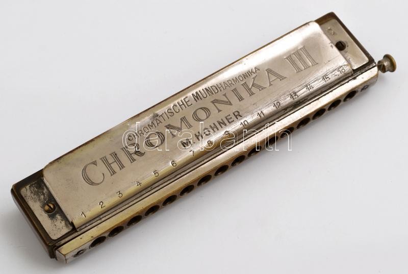 M. Hohner Chromonica harmonika, tokban, h: 18 cm https://www.darabanth.com/hu/344-Gyorsarveres/344.0/Mutargy-papirregiseg-egyeb/Bolhapiac~12/M-Hohner-Chromonica-harmonika-tokban-h-18-cm~II1945550