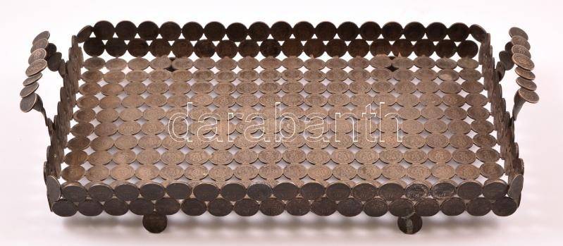 Leírás: Régi bolgár 10 stotninkásokból (cca 1888-1913) készült tálca, 40×22,5×6,5 cm