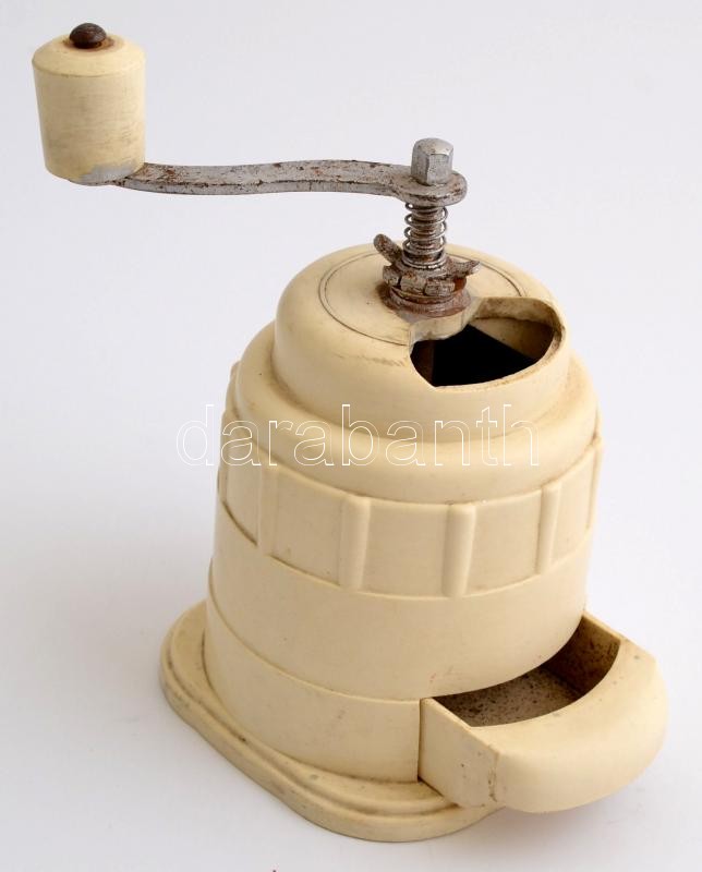 Leírás: Retró bakelit daráló, rozsdás hajtókarral, m: 17,5 cm