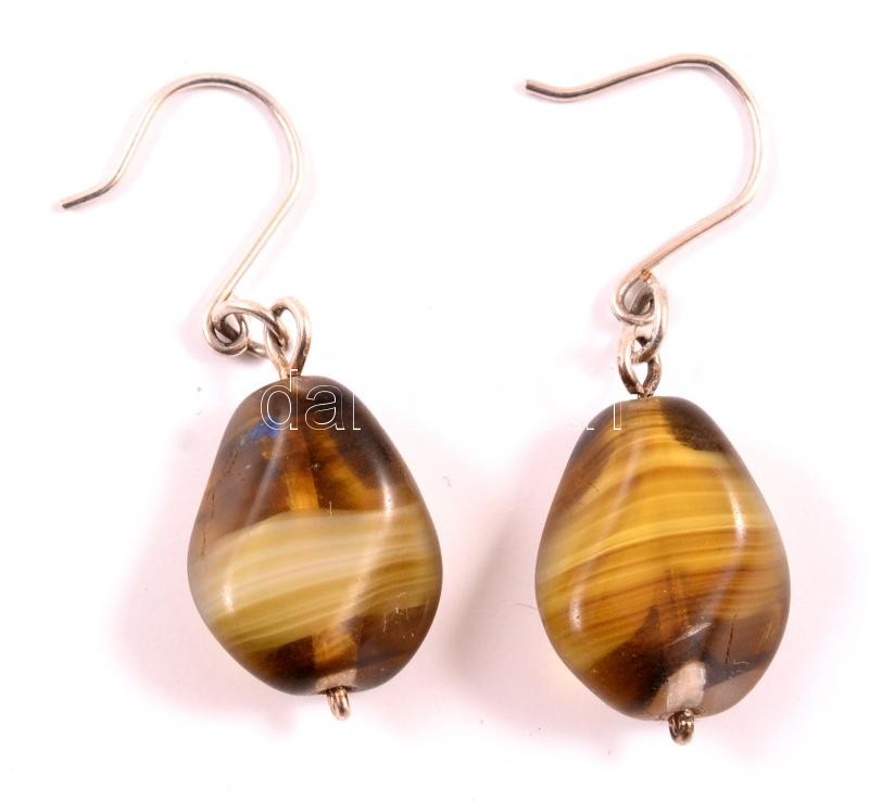 Leírás: Tigrisszem fülbevaló ezüst szerelékkel, h: 3 cm