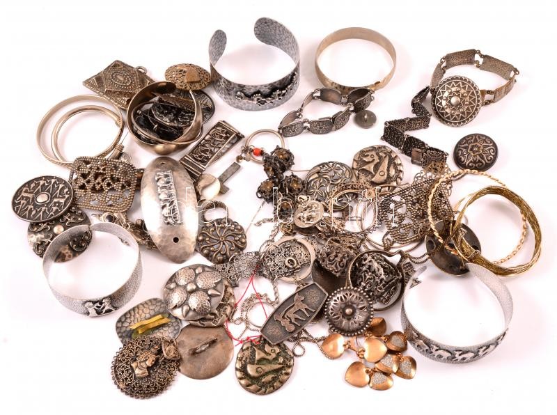 Vegyes bizsu tétel: karperecek, láncok, kitűzők, stb., összesen kb. 80... https://www.darabanth.com/hu/344-Gyorsarveres/344.0/Mutargy-papirregiseg-egyeb/Bolhapiac~12/Vegyes-bizsu-tetel-karperecek-lancok-kituzok-stb-osszesen-kb-80-db~II1942520