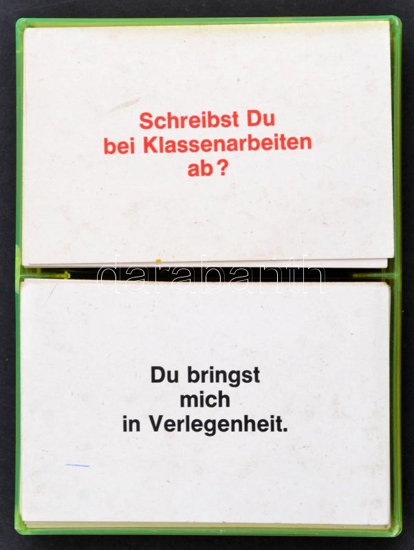 Leírás: Keress választ a kérdésre! Német nyelvű kártyajáték, 2 pakli