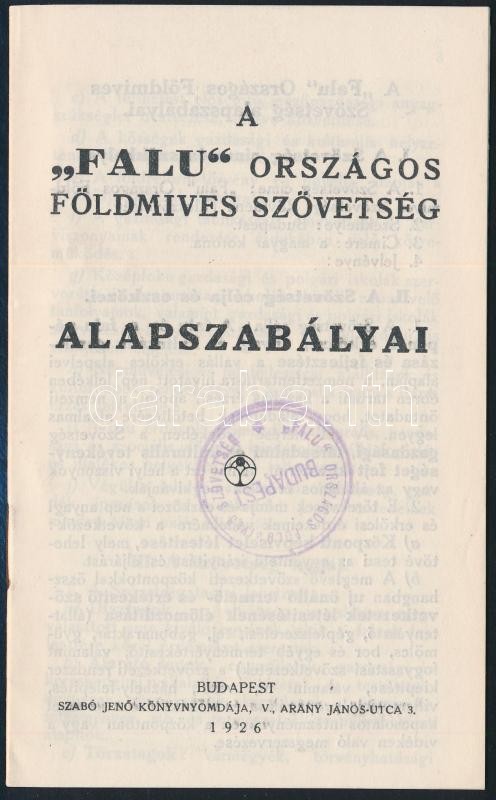 1926 A Falu országos földmíves szövetség alapszabályai. 24p https://www.darabanth.com/hu/344-Gyorsarveres/344.0/Mutargy-papirregiseg-egyeb/Nyomtatvanyok~31/1926-A-Falu-orszagos-foldmives-szovetseg-alapszabalyai-24p~II1952812