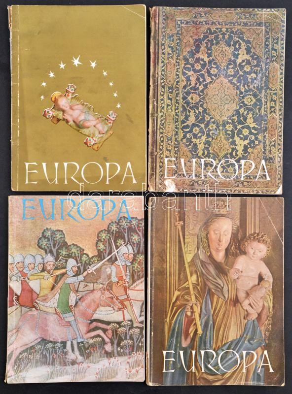 Leírás: 1943 Az Európa c. művészeti magazin első 4 száma. Kissé szakadozott papírkötésben.