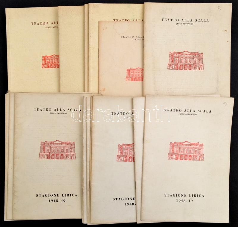 Leírás: 1948-1950 A milánói Teatro alla Scala operaház olasz nyelvű műsorfüzetei 18 db füzet.
