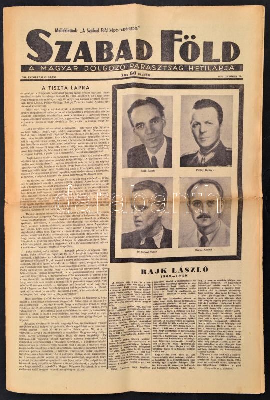 1956 Október 14. A Rajk per áldozatainak arcképét bemutató száma https://www.darabanth.com/hu/344-Gyorsarveres/344.0/Mutargy-papirregiseg-egyeb/Nyomtatvanyok~31/1956-Oktober-14-A-Rajk-per-aldozatainak-arckepet-bemutato-szama~II1942171