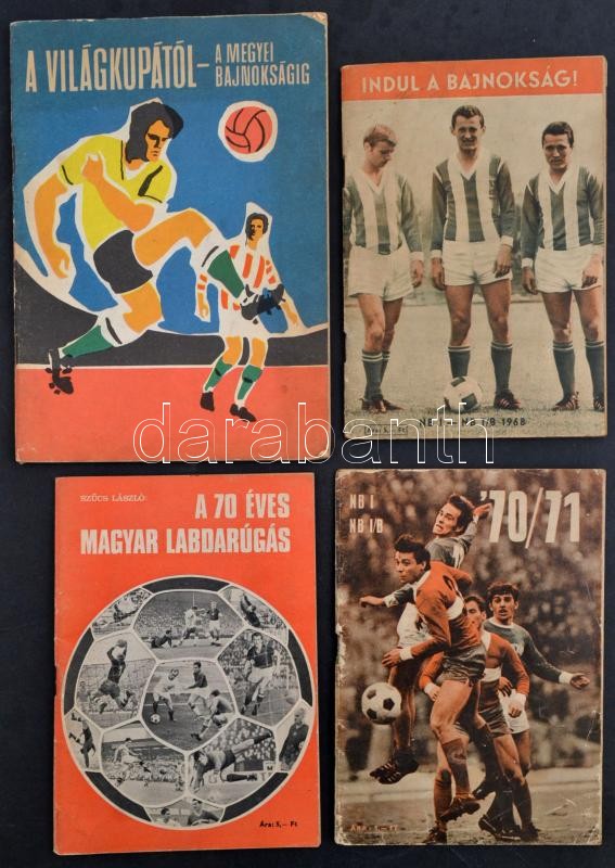Leírás: 1968-1971 Magyar labdarúgással kapcsolatos 4 db kiadvány (A 70 éves magyar labdarúgás, NB I, Indul a bajnokság, stb.)