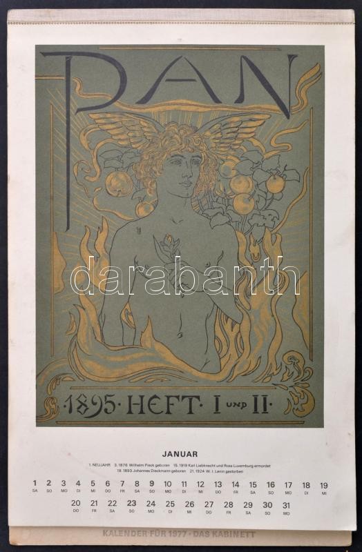 1977 Modern, szecessziós illusztrációkat tartalmazó osztrák falinaptár... https://www.darabanth.com/hu/344-Gyorsarveres/344.0/Mutargy-papirregiseg-egyeb/Nyomtatvanyok~31/1977-Modern-szecesszios-illusztraciokat-tartalmazo-osztrak-falinaptar-a-borito-hianyzik~II1953747