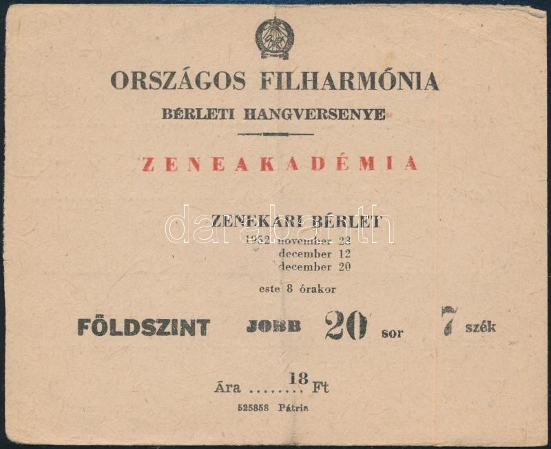1952 Országos Filharmónia bérleti hangversenye zenekari bérlet https://www.darabanth.com/hu/344-Gyorsarveres/344.0/Mutargy-papirregiseg-egyeb/Okmanyok~19/1952-Orszagos-Filharmonia-berleti-hangversenye-zenekari-berlet~II1952339