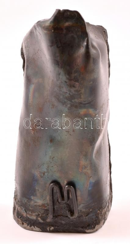 Leírás: MJ jelzéssel iparművész köpenyes fej, fém, m: 13 cm