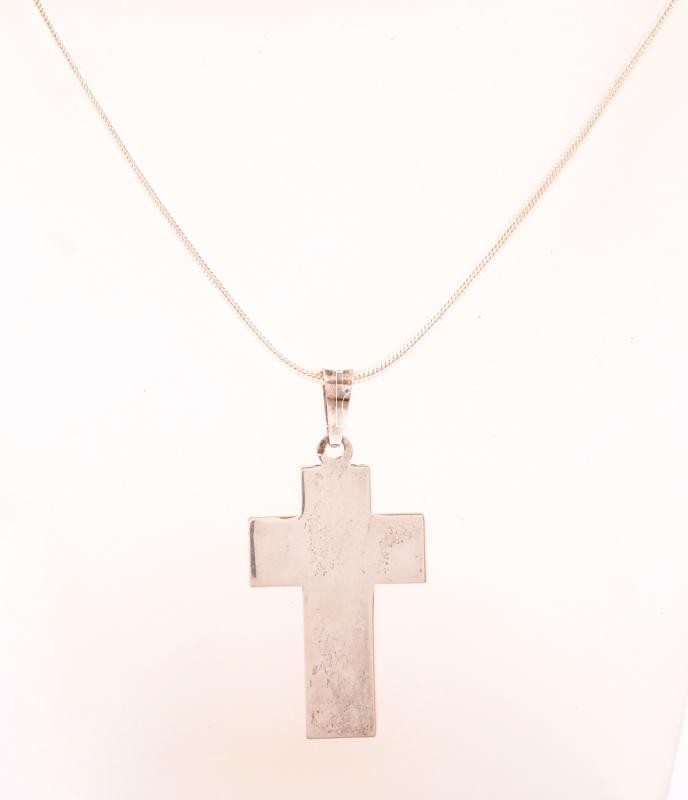 Leírás: Ezüst(Ag) kígyó nyaklánc, kereszt függővel, jelzett, állítható hosszúság: 45-50 cm, 3,8×2 cm, nettó: 8,8 g