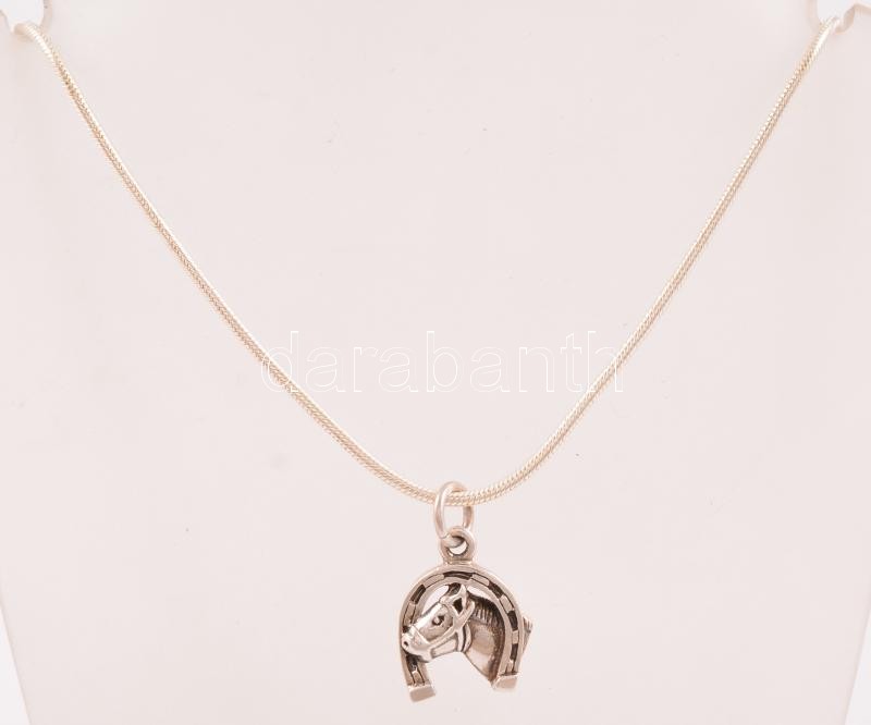 Leírás: Ezüst(Ag) kígyó nyaklánc, lópatkós függővel, jelzett, állítható hosszúság: 45-50 cm, 2×1,2 cm, nettó: 7,6 g