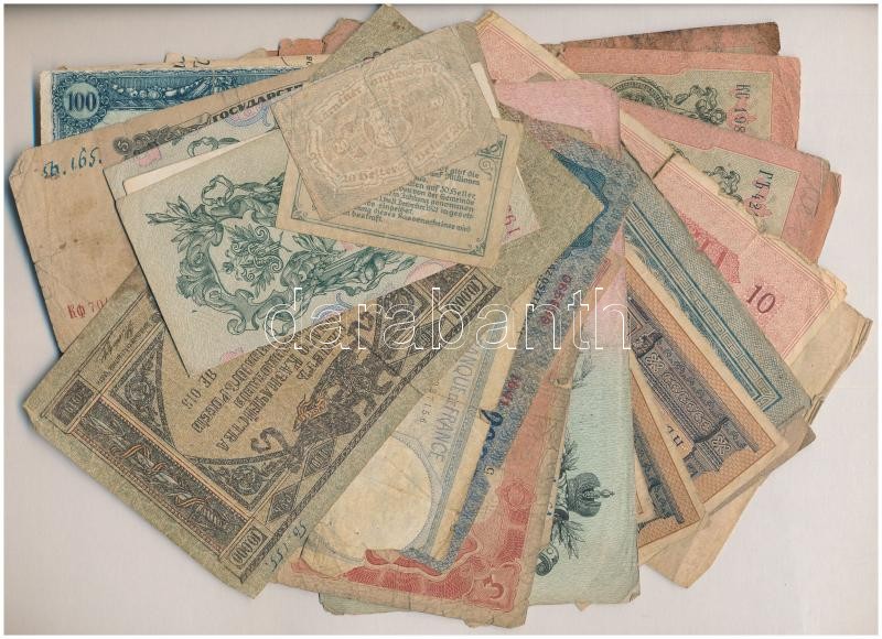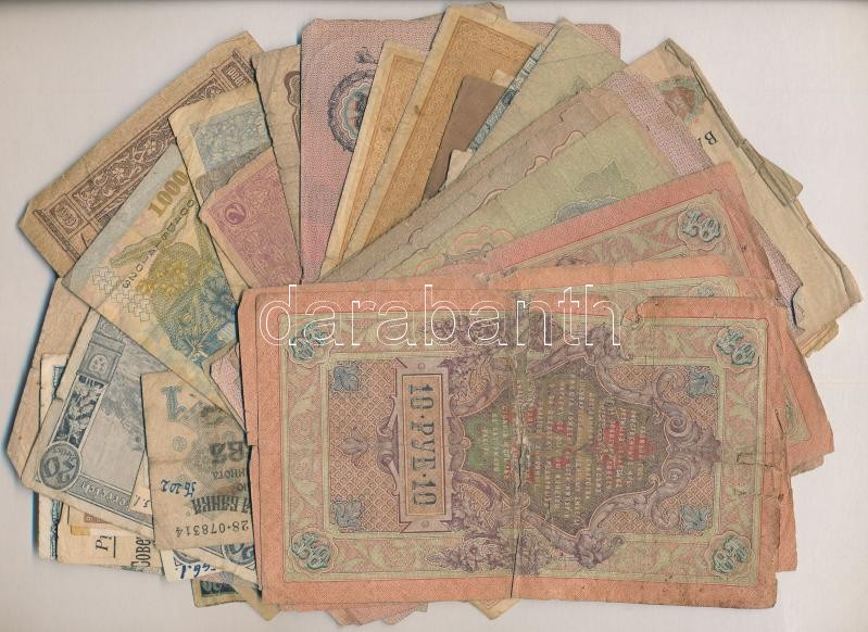 52db-os vegyes külföldi bankjegy tétel, közte sok orosz és szovjet darab T:III,III-,IV több erősen sérült bankjegy