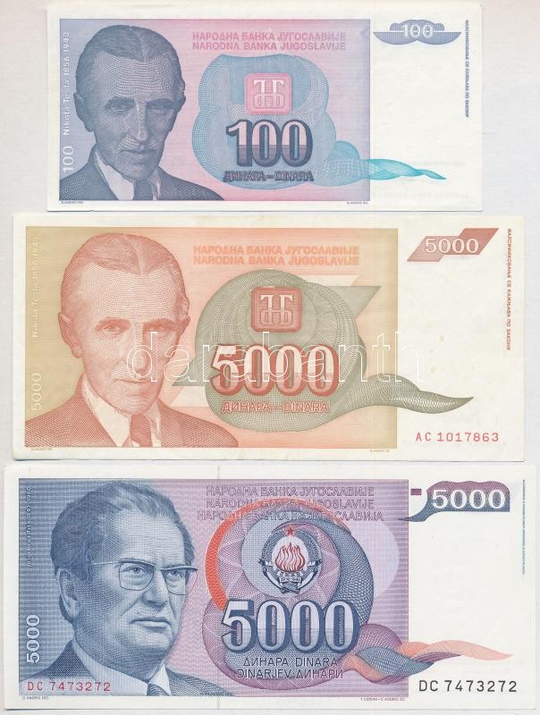 Yugoslavia... https://www.darabanth.com/hu/344-Gyorsarveres/344.0/Numizmatika/Kulfoldi-bankjegyek~1000012/Jugoszlavia-1985-5000D-plus-1993-5000D-plus-1994-100D-TI-II--Yugoslavia-1985-5000-Dinara-plus-1993-50~II1943257