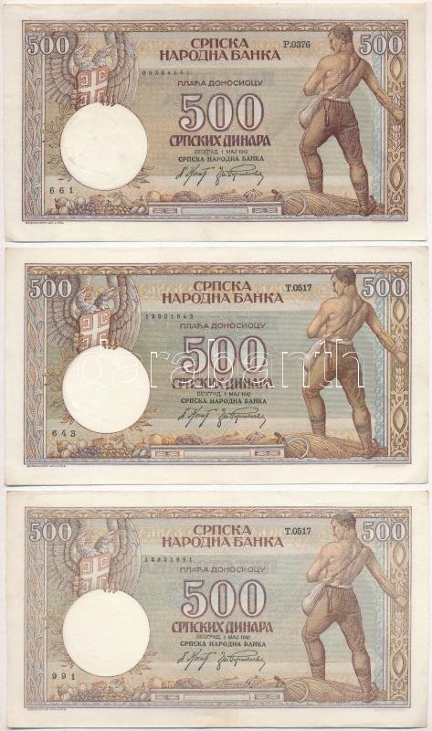 Yugoslavia / German Occupation 1942. 500 Dinara (3x) C:AU,XF