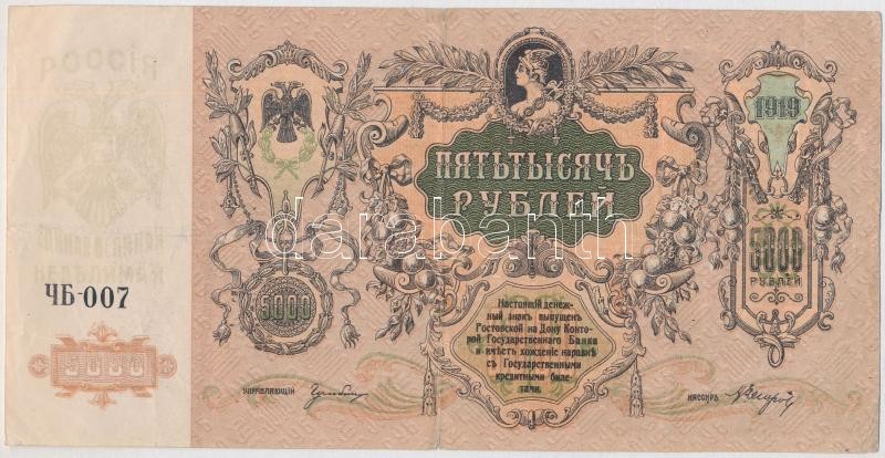 Russian Civil War / South Russia / Army of Denikin and Wrangel 1919. 5000 Rubles C:F tear