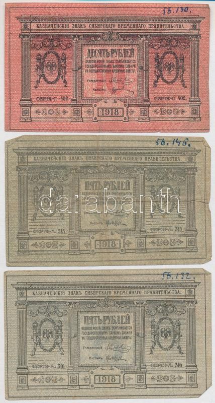 Leírás: Orosz Polgárháború / Szibéria és Urál / Ideiglenes Szibériai Igazgatás 1918. 5R (2x) + 10R T:III
