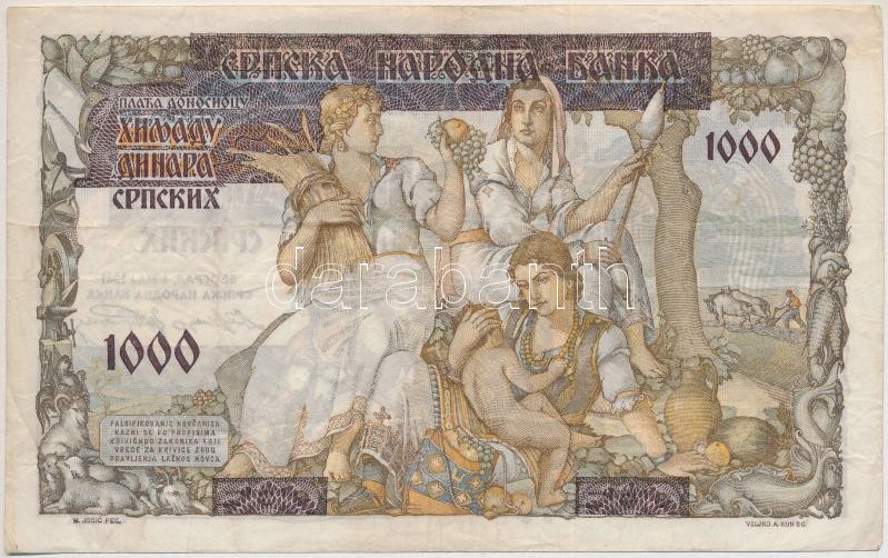 Leírás: Szerbia / Német megszállás 1941. 1000D 500D-os bankjegyre nyomva T:III