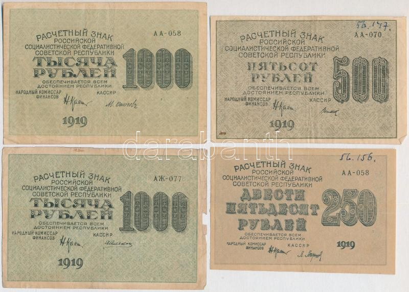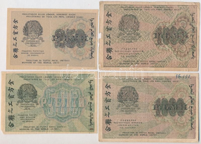 Leírás: Szocialista Szövetségi Szovjet Köztársaság 1919. 250R + 500R + 1000R (2x) T:III,III-