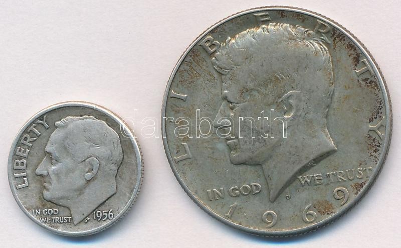 USA 1956. 1 Dime Ag + 1969. 1/2 Dollar Ag "Kennedy" C:VF